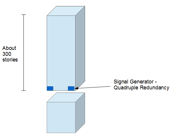 Figure 2. Building subsegment. Each isolated structure is limited to about 300 stories, because the generated signal may become too weak beyond this distance. (Note that Al Beilek mentioned this regarding his travel to the 28th century.) This makes it possible to have structures more than 1 mile high (1700 meters) by utilizing building segments. Each segment is floated separately. There is no limit to how high the structure can be made.