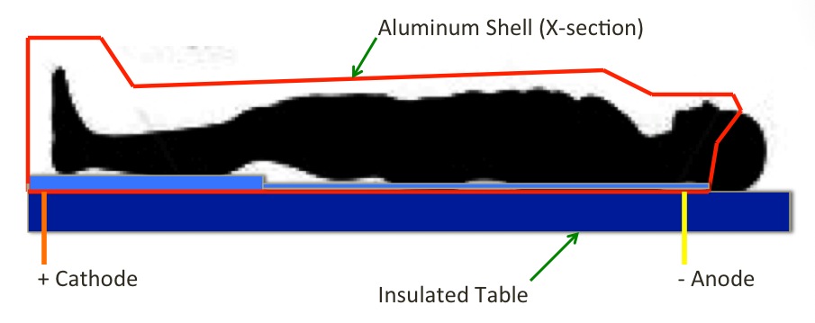 As an example of life extension; a person at 50 years of age, could visit a facility and be placed in one of the aluminum shells. After a brief calculation is performed, an electric charge is sent through the shell which regresses the body tissues to a time of about 30 years of age. The electric charge lasts a small fraction of a second. The patient can immediately sit up. There is no recovery period associated with traditional surgeries.