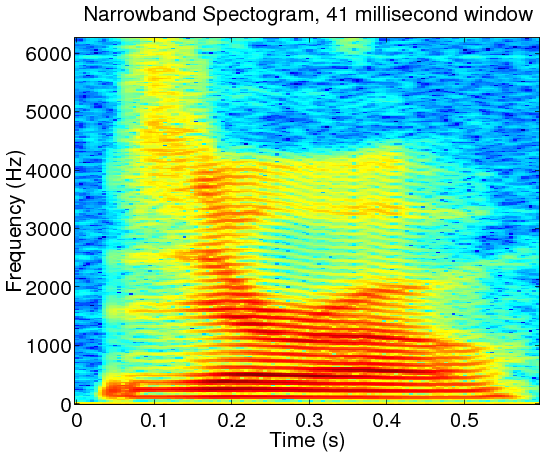 Create both a wideband and a narrowband spectrogram using your
