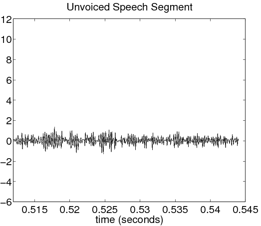 Save 300 samples from the unvoiced segment of the speech into a Matlab vector called UnvoicedSig.