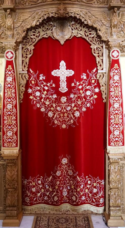 The floor was covered with marble, the roof construction rests on round columns. The carved iconostasis is magnificent and deserves closer inspection. You will discover masterfully carved figures of saints and animal figures such as eagles and dragons. The already above mentioned red velvet curtain hangs in the middle of the iconostasis.