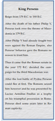 With around 40,000 men, both forces had roughly the same strength. King Perseus commanded the Macedonian units. The phalanx provided the bulk of the army. The cavalry and infantry were also involved in the battle.