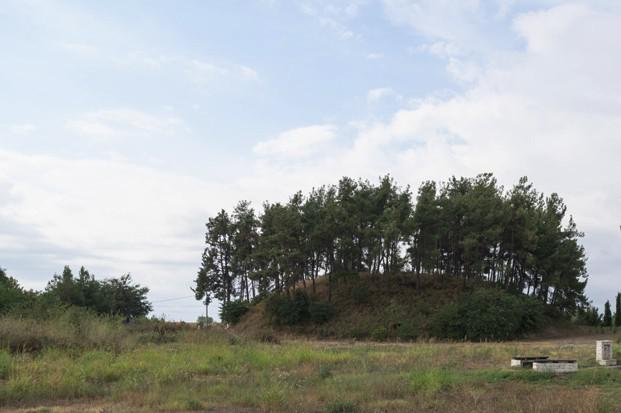 The burial mounds (tumuli) are located east (A) and west (B) of the Athens — Thessaloniki highway, about 600 meters northwest of the outskirts of the village of Korinos.