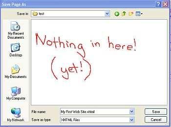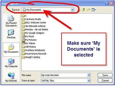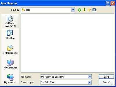 At the bottom of the screen you will see File Name and Save as type.In the File Name field you will see the words My First Web Site.xhtml.