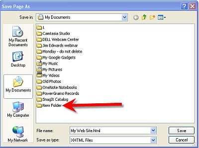 Before we save anything – as just discussed – we are going to create a NEW folder in which we will save EVERYTHING do with your web site.