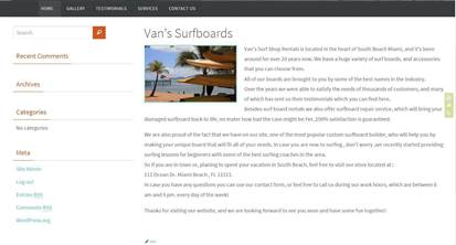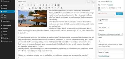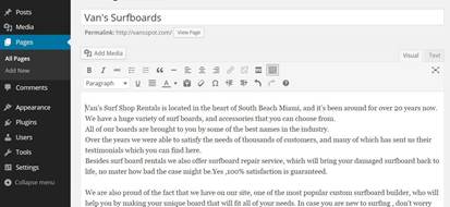 From your Dashboard go to Pages/All Pages and find the Van’s Surfboards page than place your cursor over so you can see the menu that will drop down, and click on Edit.
