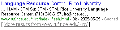 We'll do a search for language at the university's home page. It seems we have a center dedicated to our needs: the Language Resource Center