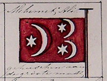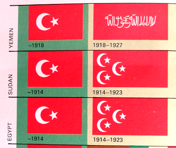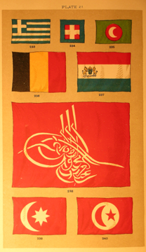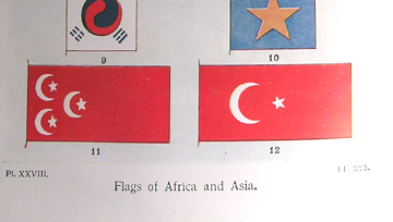 Just what we are looking for, National Flags and their Histories. But Smith's book has much more to offer than that, as we shall see. Looking in the index we find an interesting option: Star(s) and moon, symbolism of, 316-317. If we skip to p. 316, we find a collection of such flags,