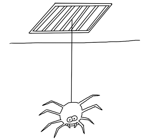 A few days had passed since the camping trip and William was anxious to pull off another prank. This time around it was going to be a very simple and straightforward one. William’s grandma was still at his house and had a terrible fear of spiders. (Why William had to torment her, I had no idea, but he seemed to enjoy it.) While at school, William traded a kid in our class his Whoopee Cushion (which he used to prank Mr. Mousseau) for a giant fake spider. He said the idea came to him during class while Mr. Mousseau was teaching a science lesson and talked about people who had arachnophobia. Arachnophobia is the fear of spiders, and his grandma was deathly afraid of them. William thought it would be a great trick to scare his poor grandmother when she was in her bed reading for the night. He explained that there was an old heating vent that wasn’t used anymore above the bed and that it was covered by a wooden box and some insulation in the attic. William said he would carefully crawl across the floor joists and quietly remove everything so he could lower the fake spider down through the vent with some fishing line. His grandma would be reading as usual and he would lower the spider down until it was just above her head. It would then be only a matter of time before she spotted the spider and freaked out. He was sad to know that he would miss seeing her face as she screamed at the sight of the spider. He had written the plans in class and had them ready for me to see. The first plan showed William crawling through the attic above his grandma as she was reading in bed.